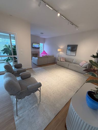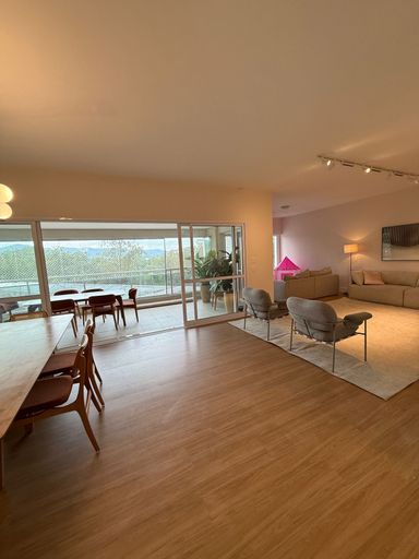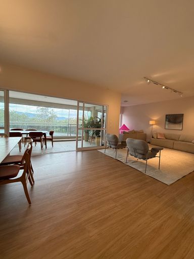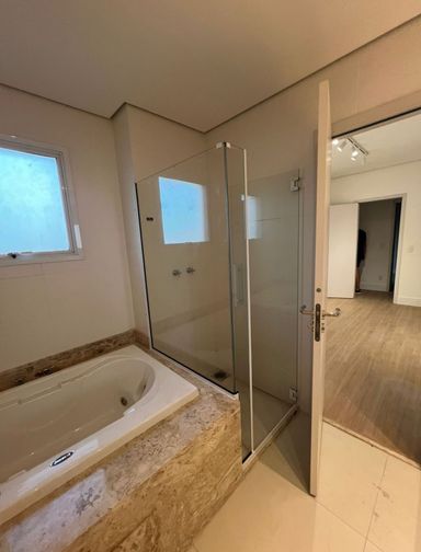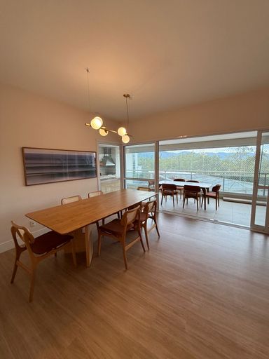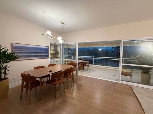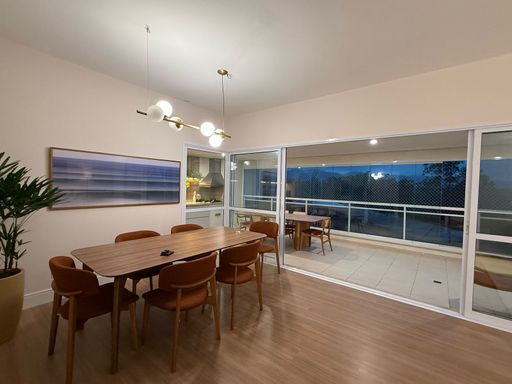 241 m2, 4 suítes sendo 1 master com closet e hidromassagem, sala de estar, sala de jantar, sala de lareira, varanda gourmet com fechamento de vidro, cozinha, lavanderia, varanda técnica, banheiro de serviço, 3 vaga de garagem cobertas, armários planejados, condomínio com lazer completo.