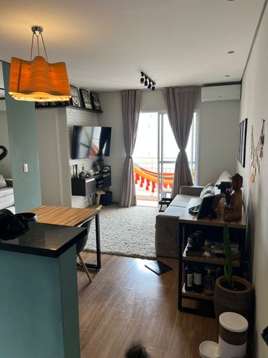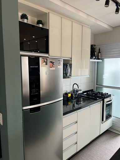 2 dormitórios sendo 1 suíte, sala 2 ambientes, cozinha americana, lavanderia, varanda, 1 vaga de garagem coberta.