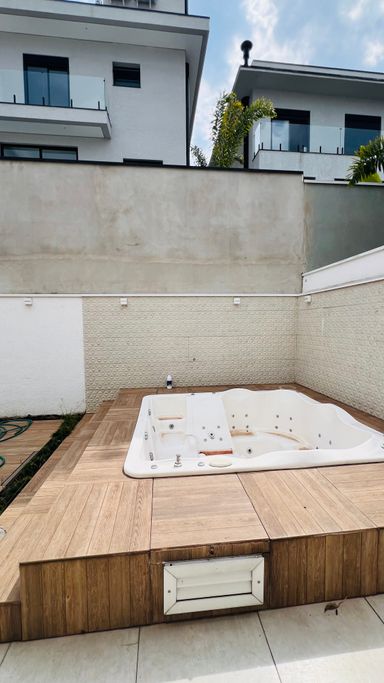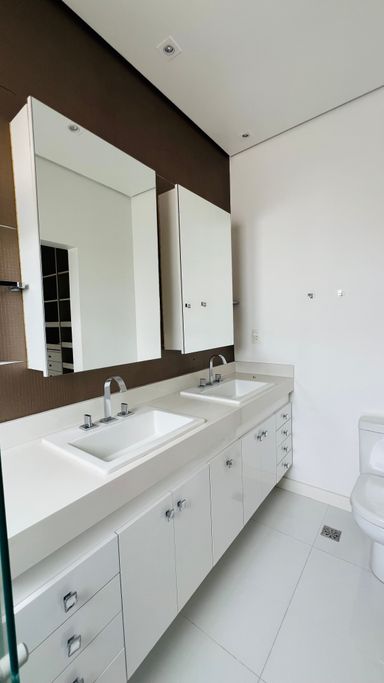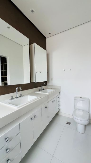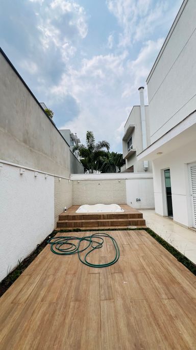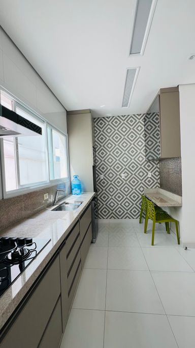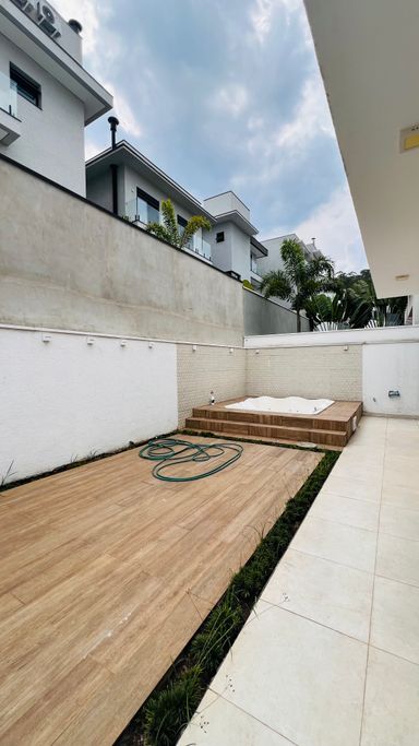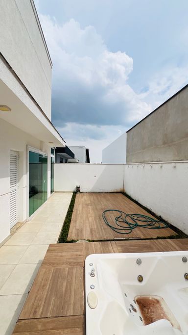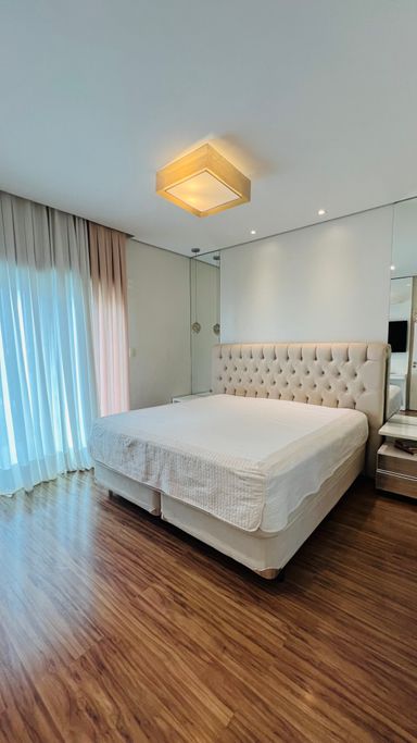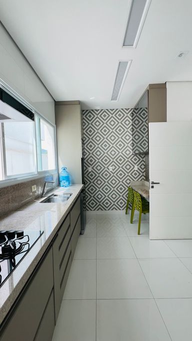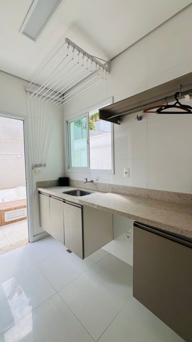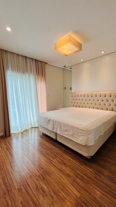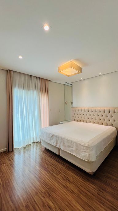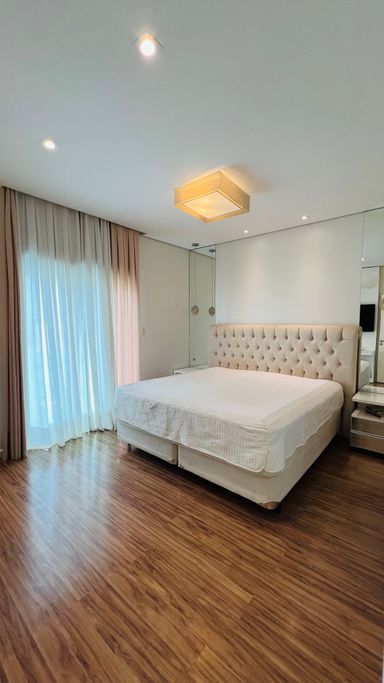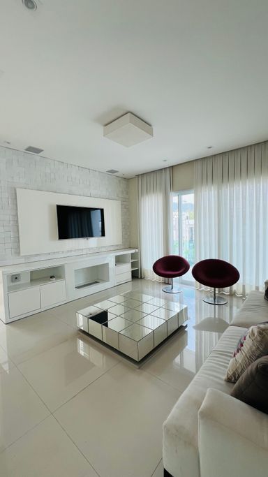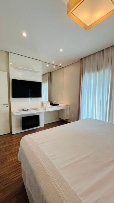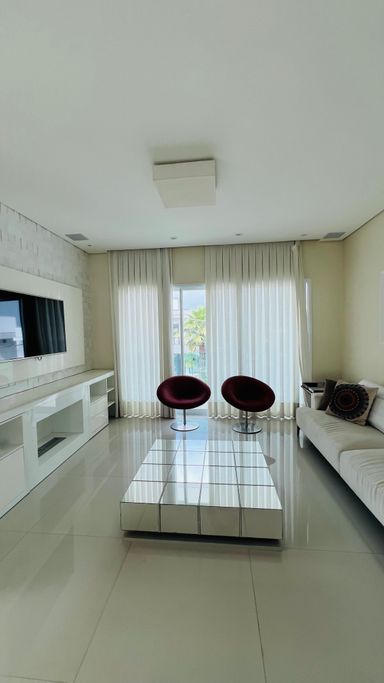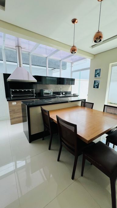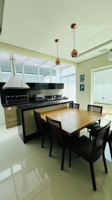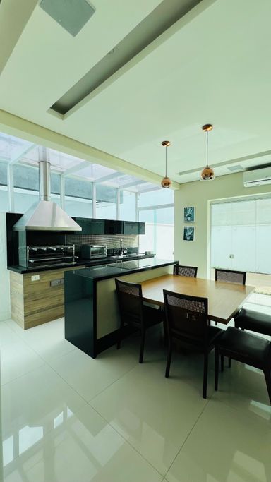 Sala 2 ambientes (estar e jantar), cozinha com móveis planejados e eletrodomésticos, espaço gourmet, lavanderia, quintal grande com jacuzzi, 3 suítes sendo 1 com closet, todos os ambientes com ar condicionado, lavabo, depósito na garagem que pode ser utilizado como escritório, garagem para 4 carros