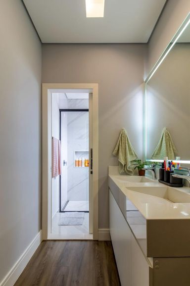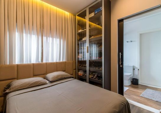 Armários planejados em todos ambientes, eletrodomésticos embutidos, ar condicionado, piscina, espaço gourmet integrado com a cozinha.